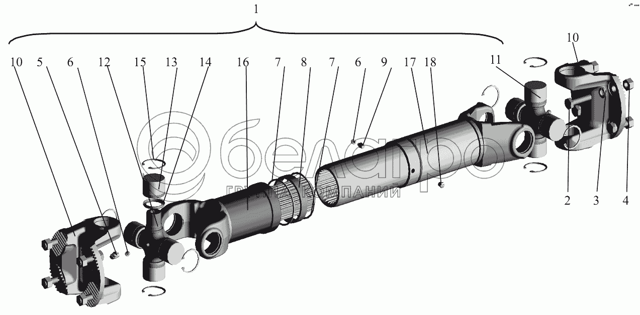 Каталог запасных частей к технике: МАЗ-631236. Установка карданных валов МАЗ-650136