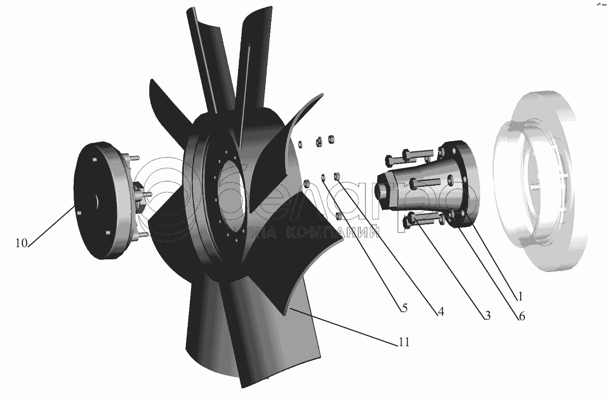 Каталог запасных частей к технике: МАЗ-631236. Установка муфты вентилятора