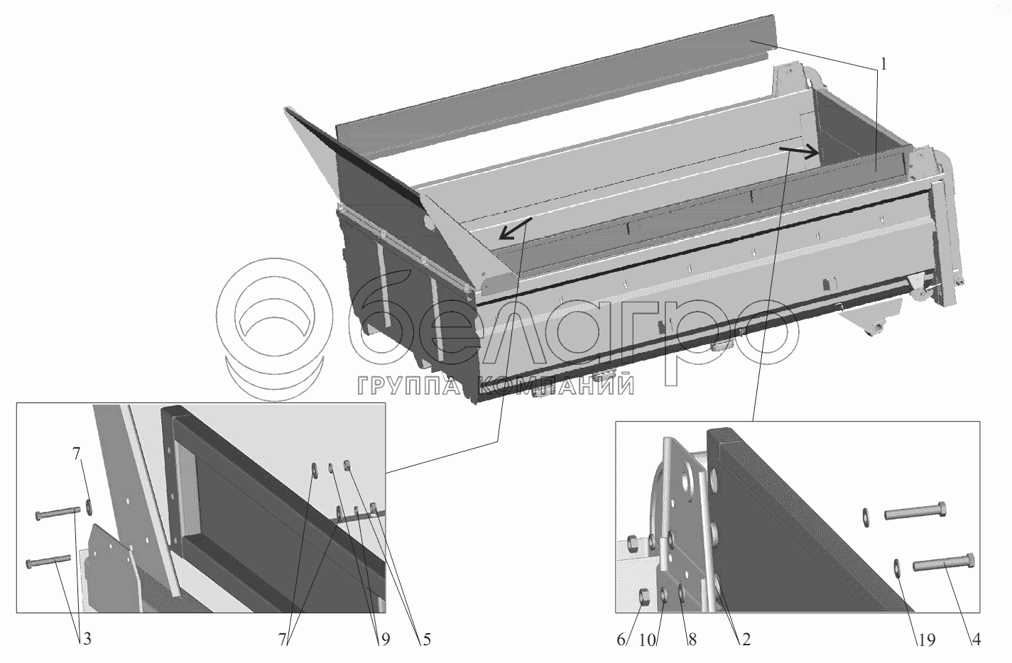 Каталог запасных частей к технике: МАЗ-631236. Установка надставных бортов 5550-8500012