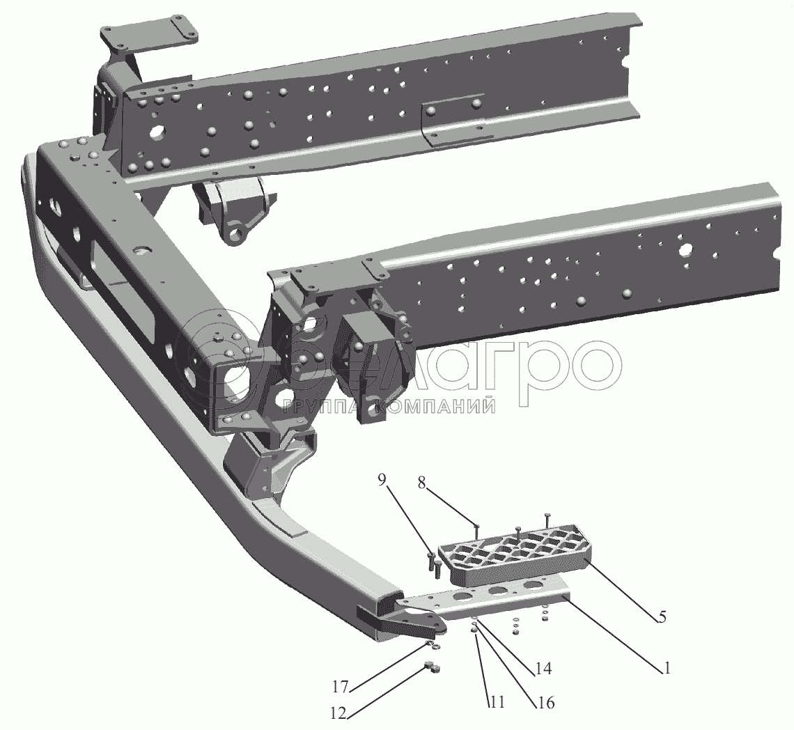 Каталог запасных частей к технике: МАЗ-631236. Установка нижней подножки 544008-8400016-010