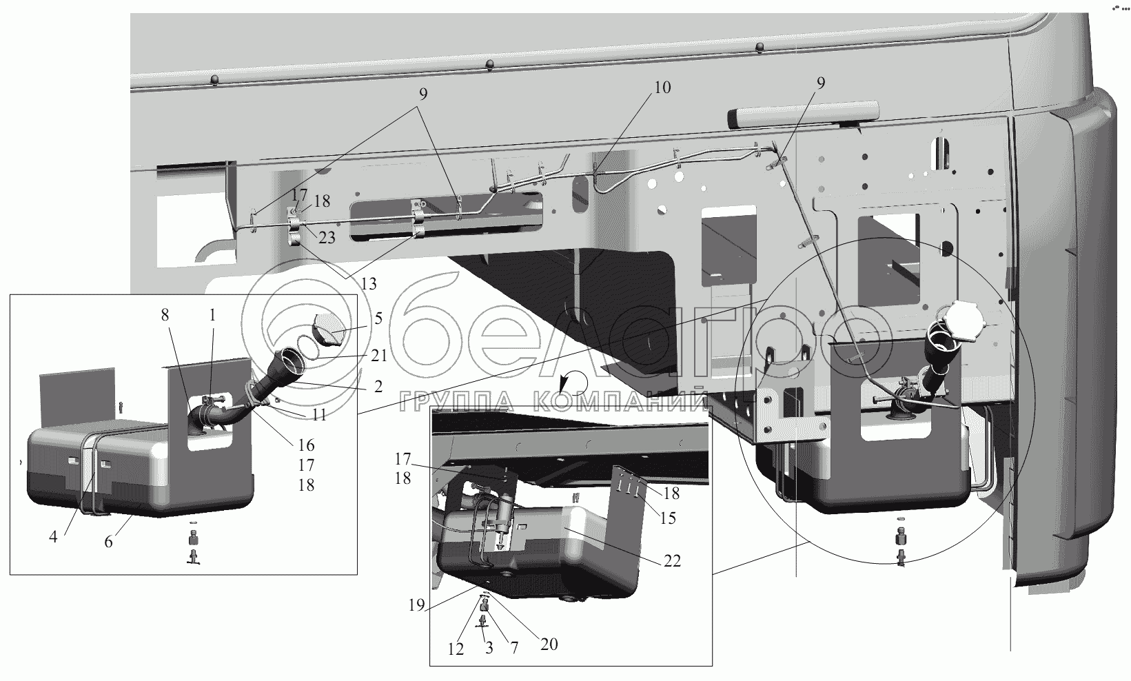 Каталог запасных частей к технике: МАЗ-631236. Установка омывателя 6430-5200008