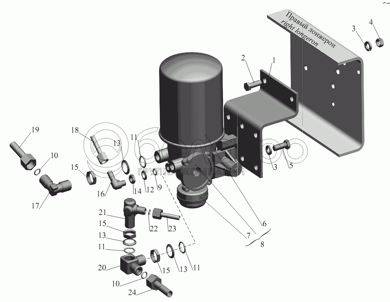 Каталог запасных частей к технике: МАЗ-631236. Установка осушителя воздуха и присоединительной арматуры