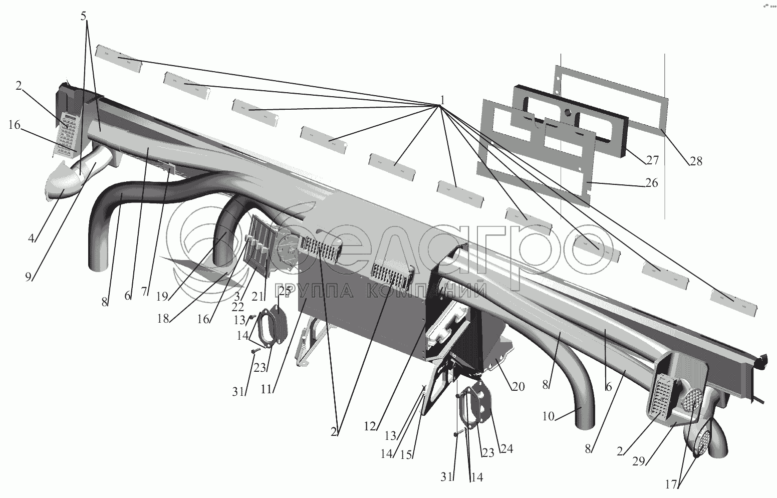 Каталог запасных частей к технике: МАЗ-631236. Установка отопителя 5440-8100001-010