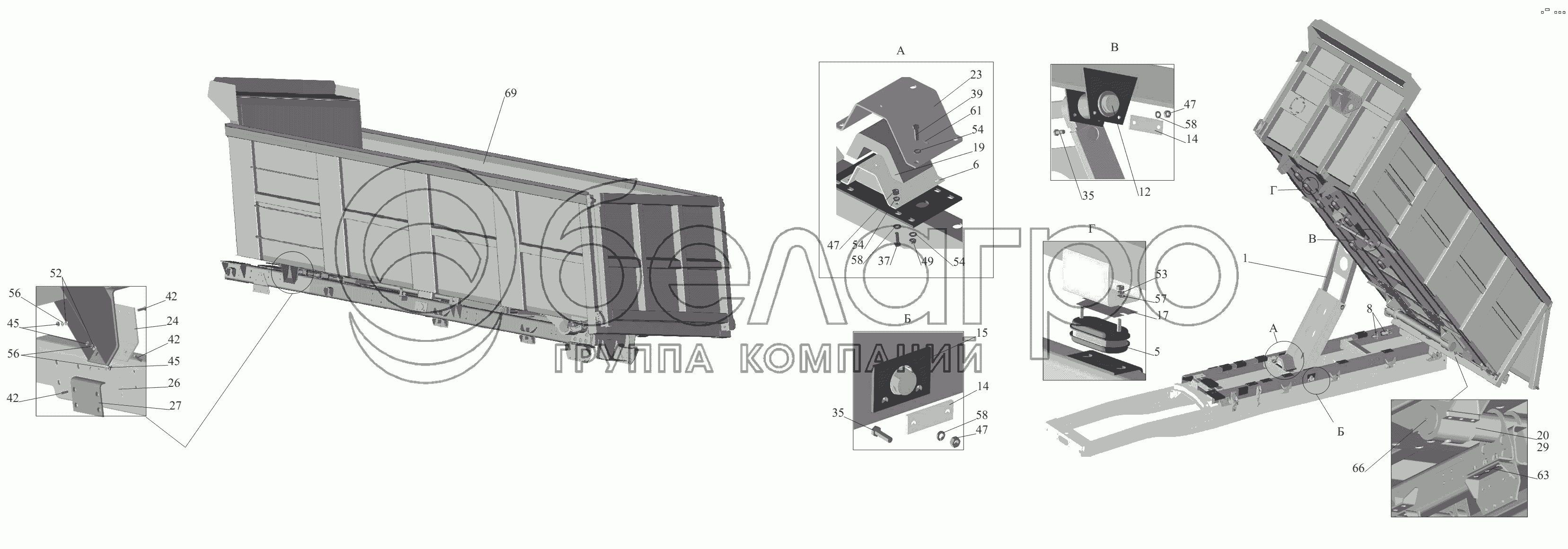 Каталог запасных частей к технике: МАЗ-631236. Установка платформы 650136-8500002