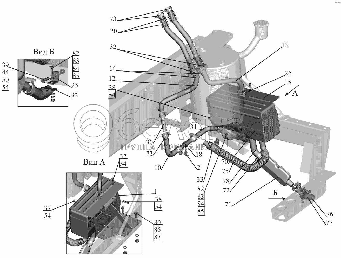 Каталог запасных частей к технике: МАЗ-631236. Установка подогревателя 555035-1015001