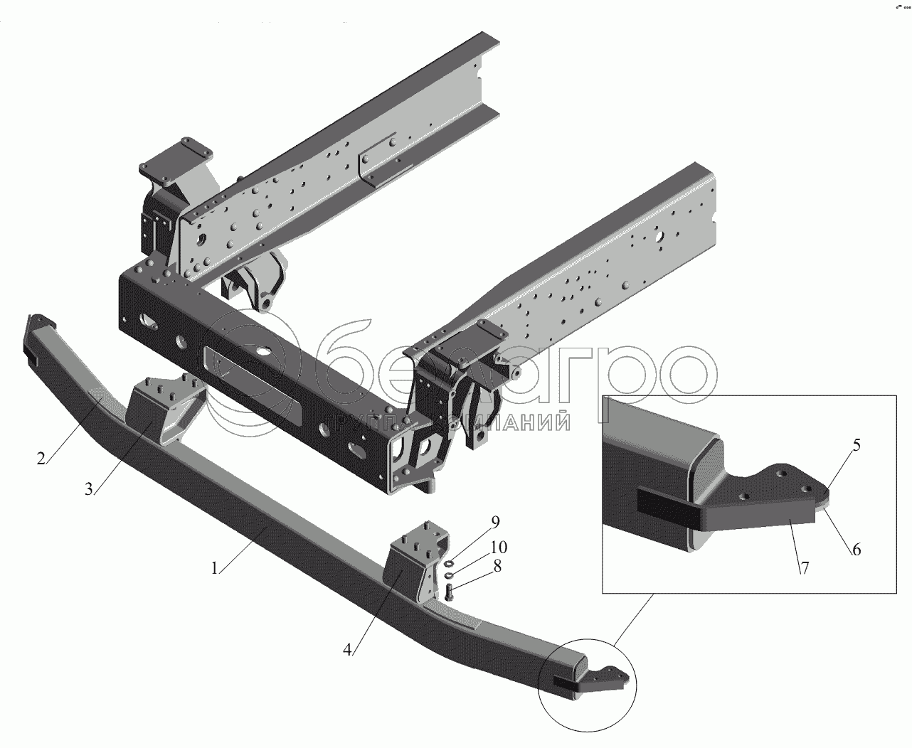 Каталог запасных частей к технике: МАЗ-631236. Установка противоподкатного бруса 6430-2800030-001