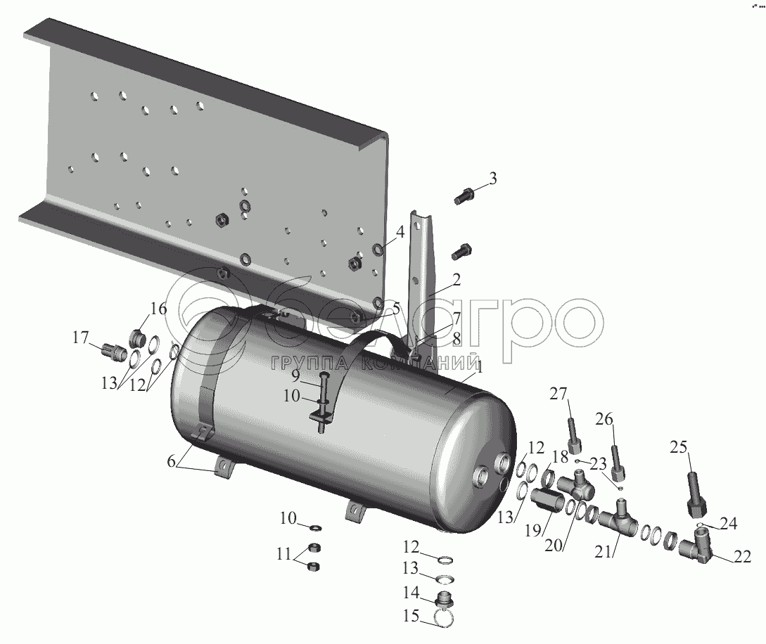 Каталог запасных частей к технике: МАЗ-631236. Установка ресивера и присоединительной арматуры