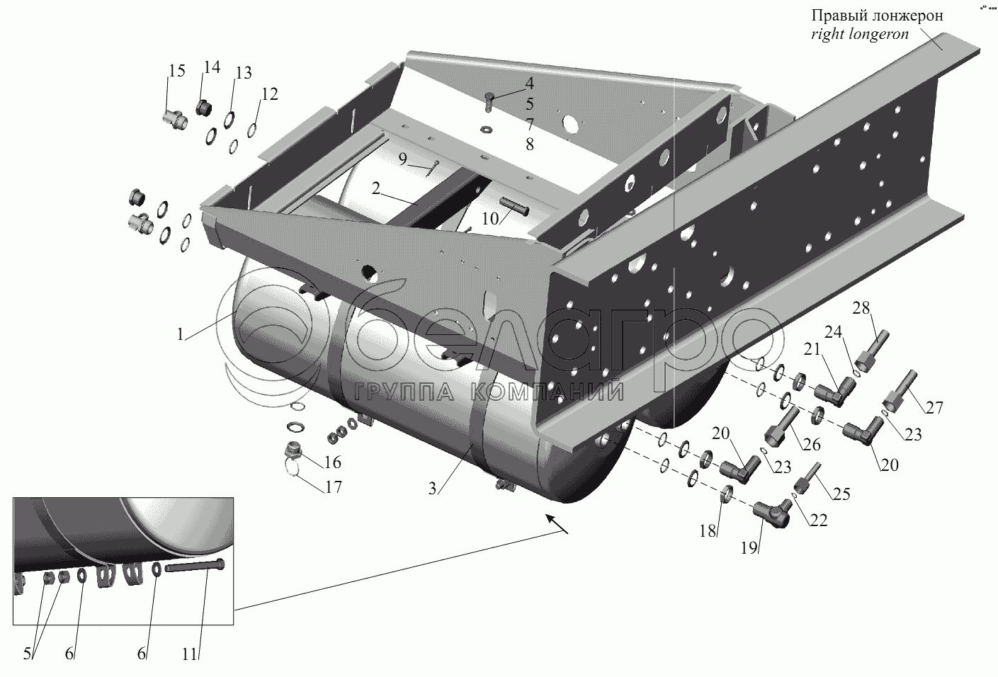Каталог запасных частей к технике: МАЗ-631236. Установка ресиверов и присоединительной арматуры