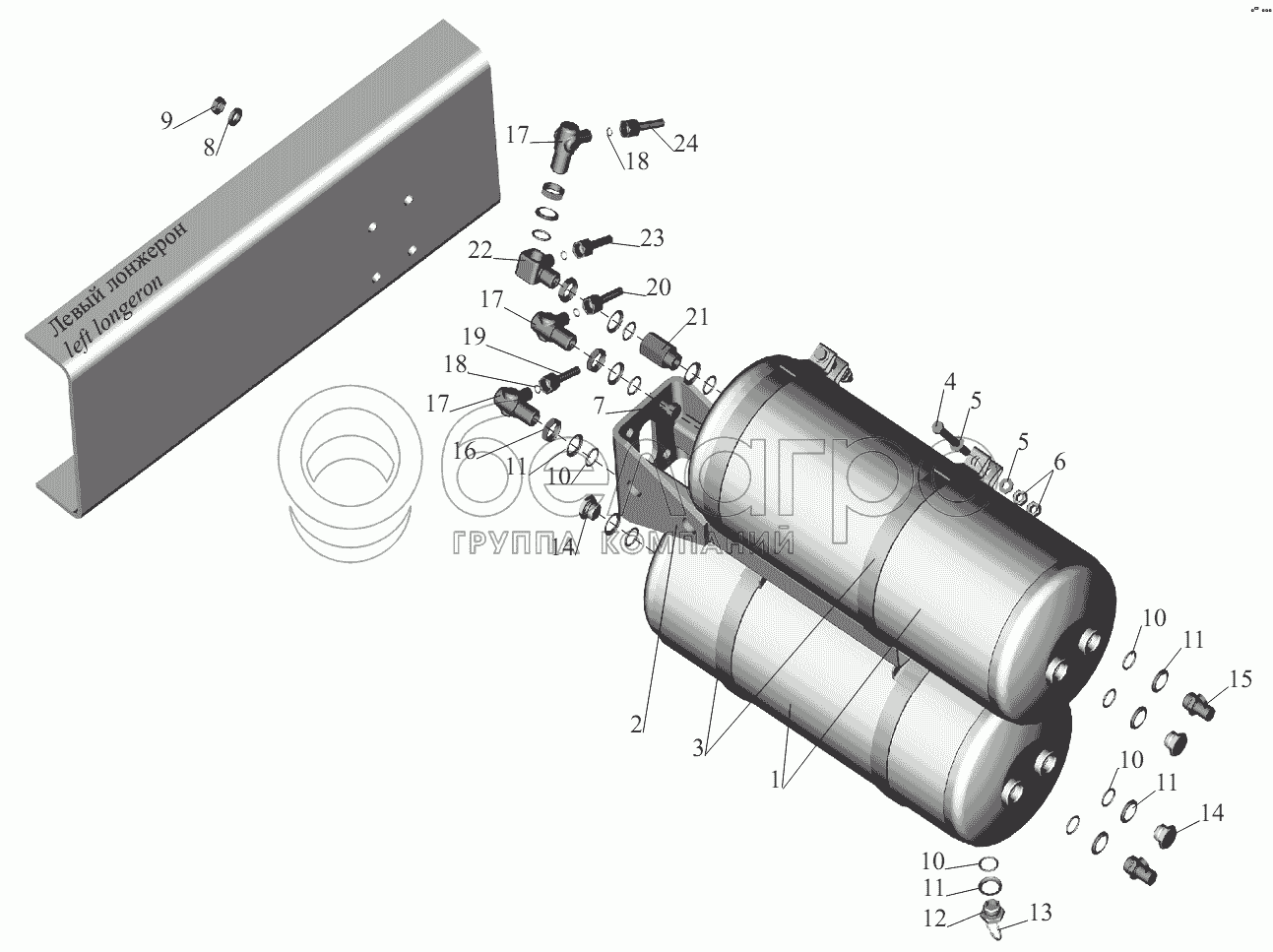 Каталог запасных частей к технике: МАЗ-631236. Установка ресиверов и присоединительной арматуры