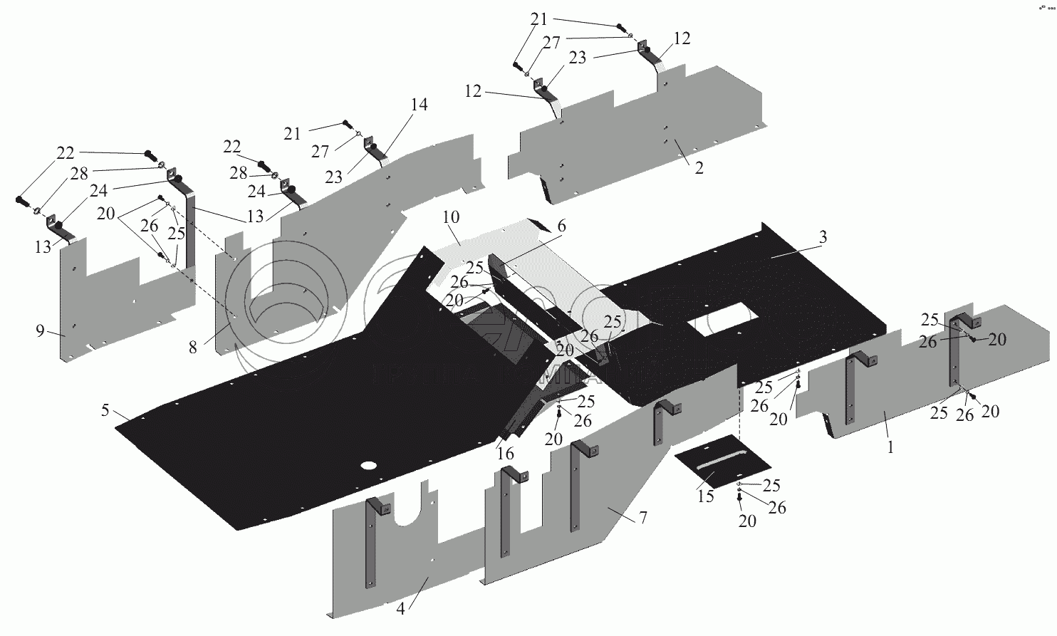 Каталог запасных частей к технике: МАЗ-631236. Установка шумоизоляционных экранов 555035-1061004-005
