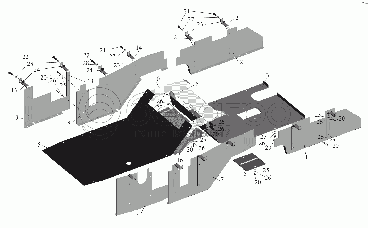 Каталог запасных частей к технике: МАЗ-631236. Установка шумоизоляционных экранов 650136-1061004-005
