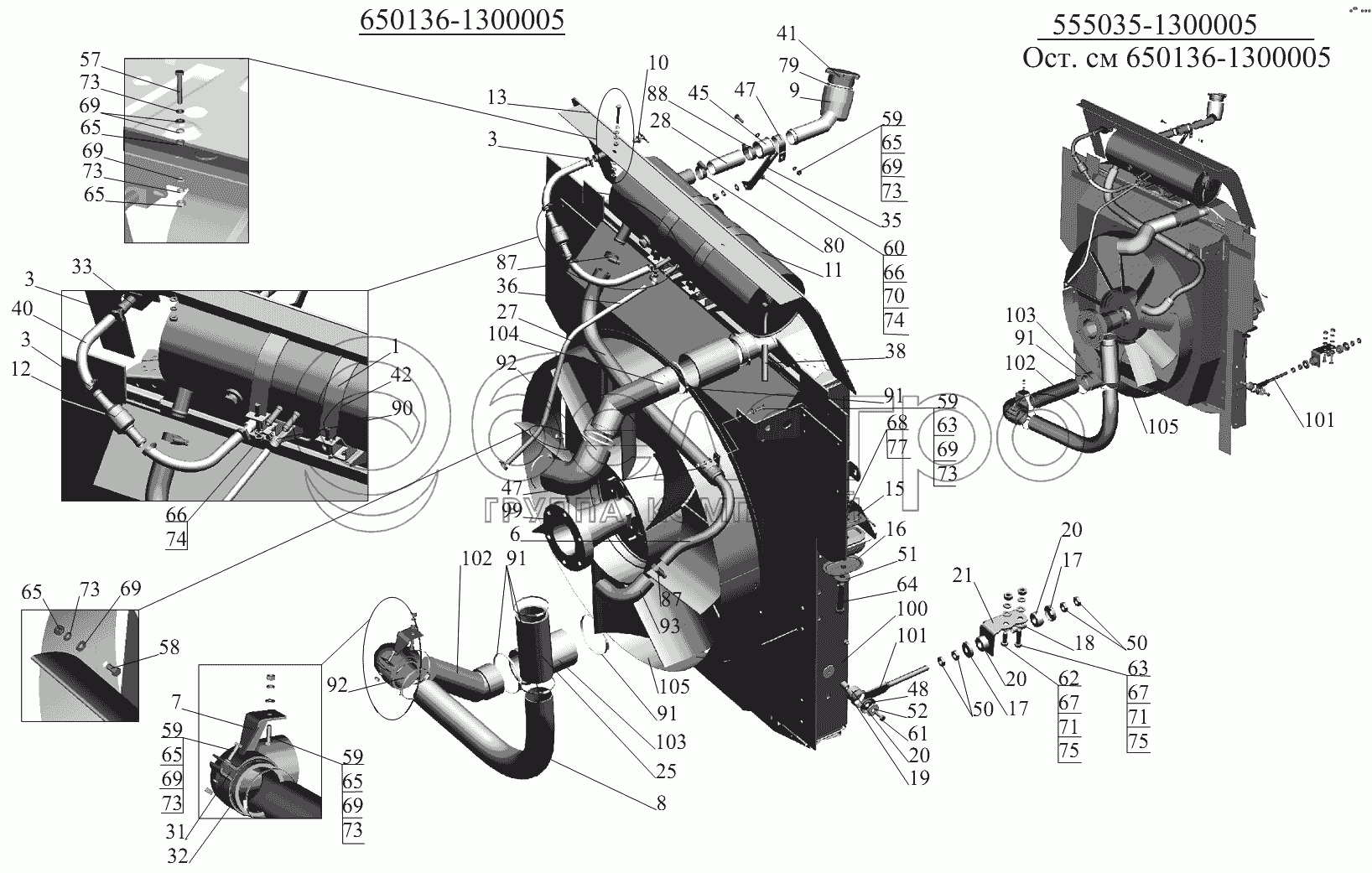 Каталог запасных частей к технике: МАЗ-631236. Установка системы охлаждения