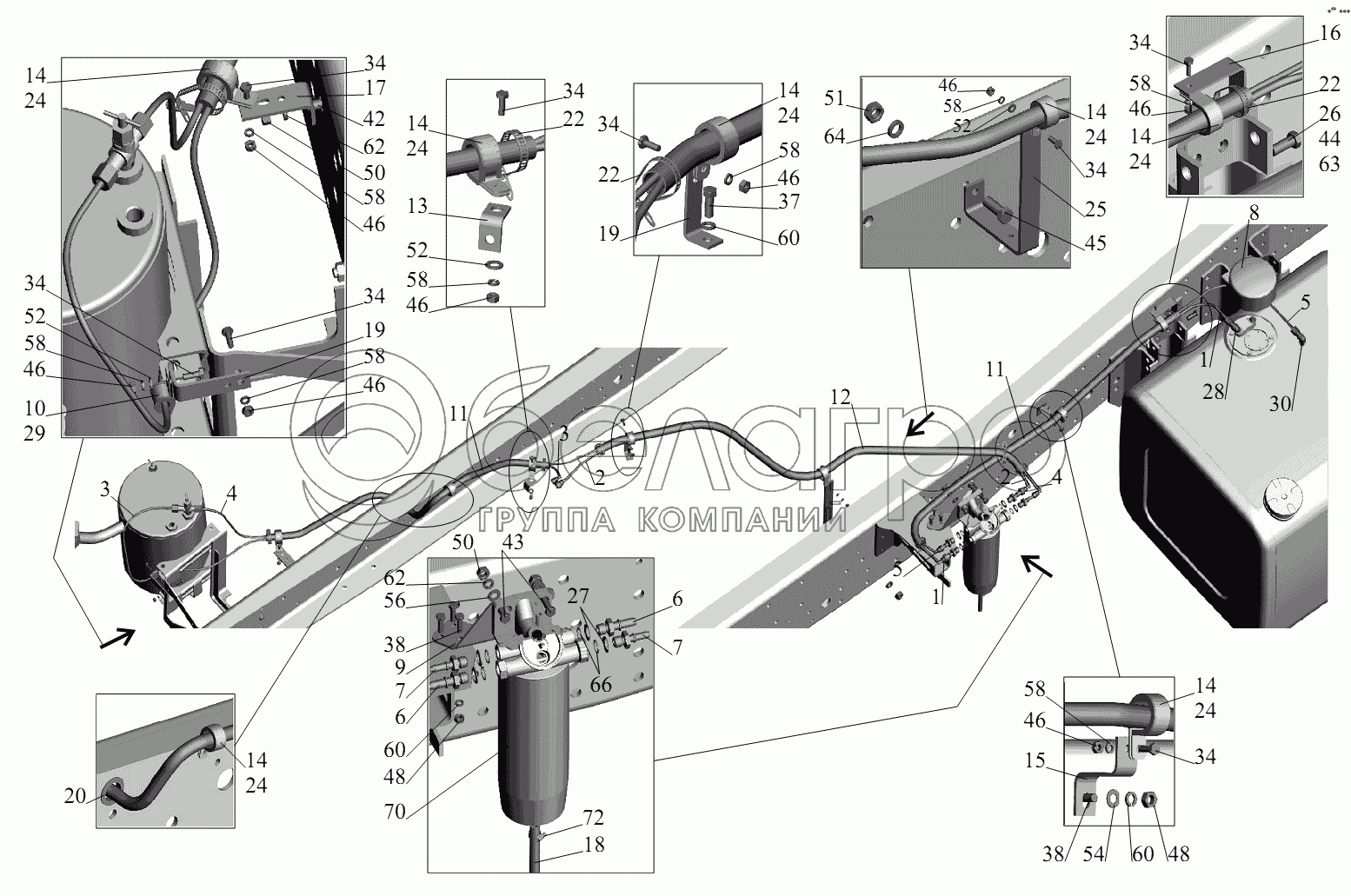 Каталог запасных частей к технике: МАЗ-631236. Установка топливопроводов 555035-1104002(c подогревателем)