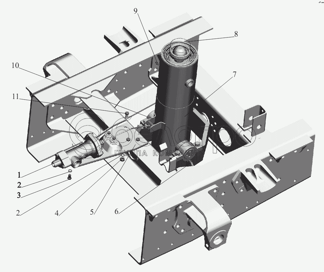 Каталог запасных частей к технике: МАЗ-631236. Установка цилиндра и клапана 555102-8603500