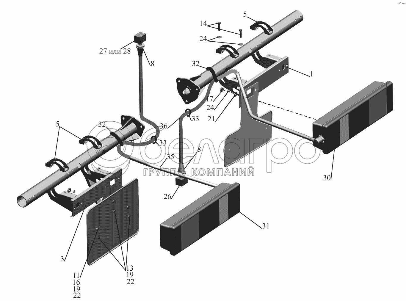 Каталог запасных частей к технике: МАЗ-631236. Установка задних фонарей 6501-3700009