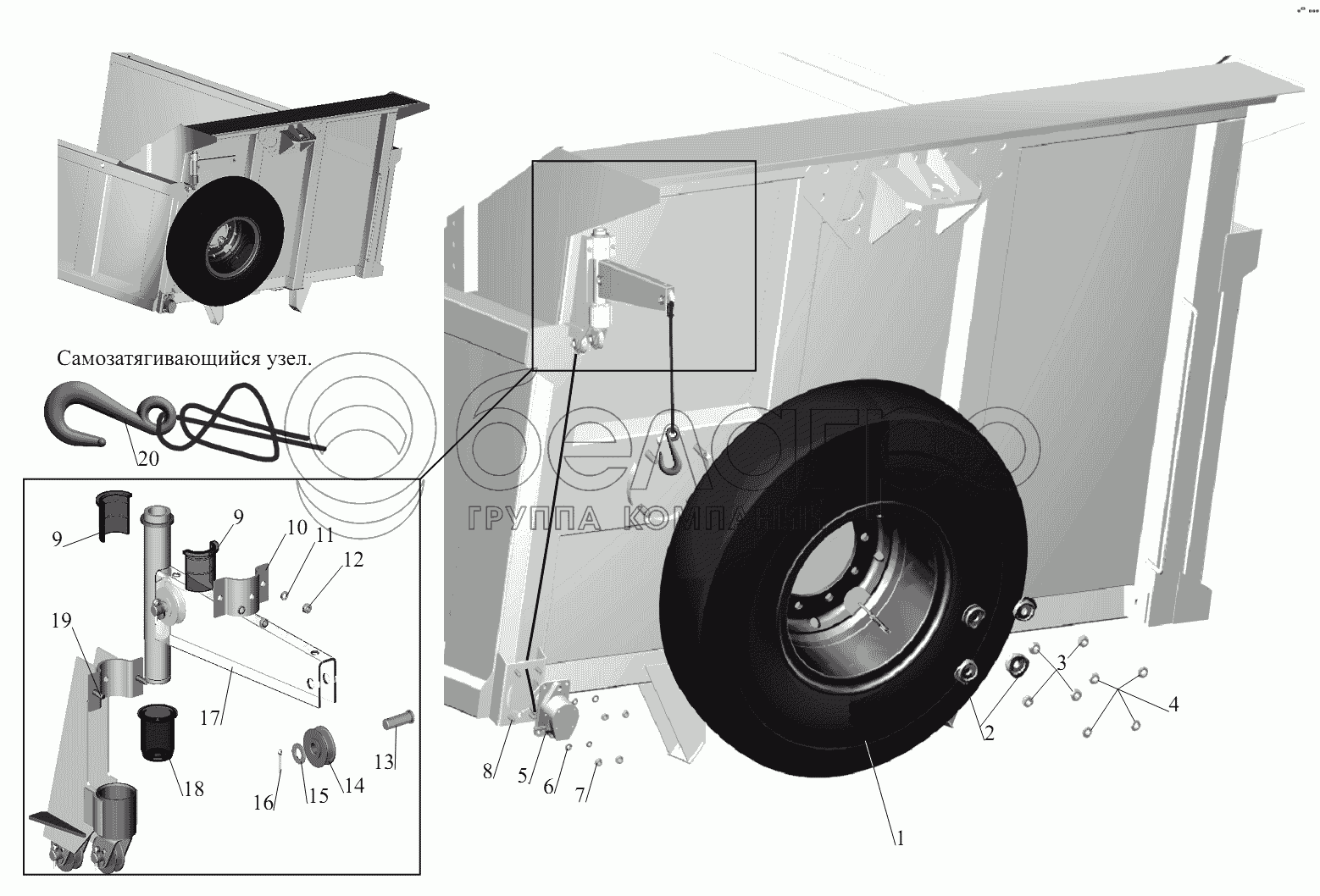 Каталог запасных частей к технике: МАЗ-631236. Установка запасного колеса 650136-3100001