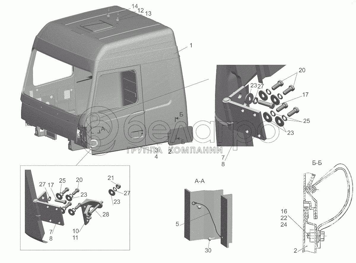Каталог запасных частей к технике: МАЗ-6312B9-0008425-012. Кабина