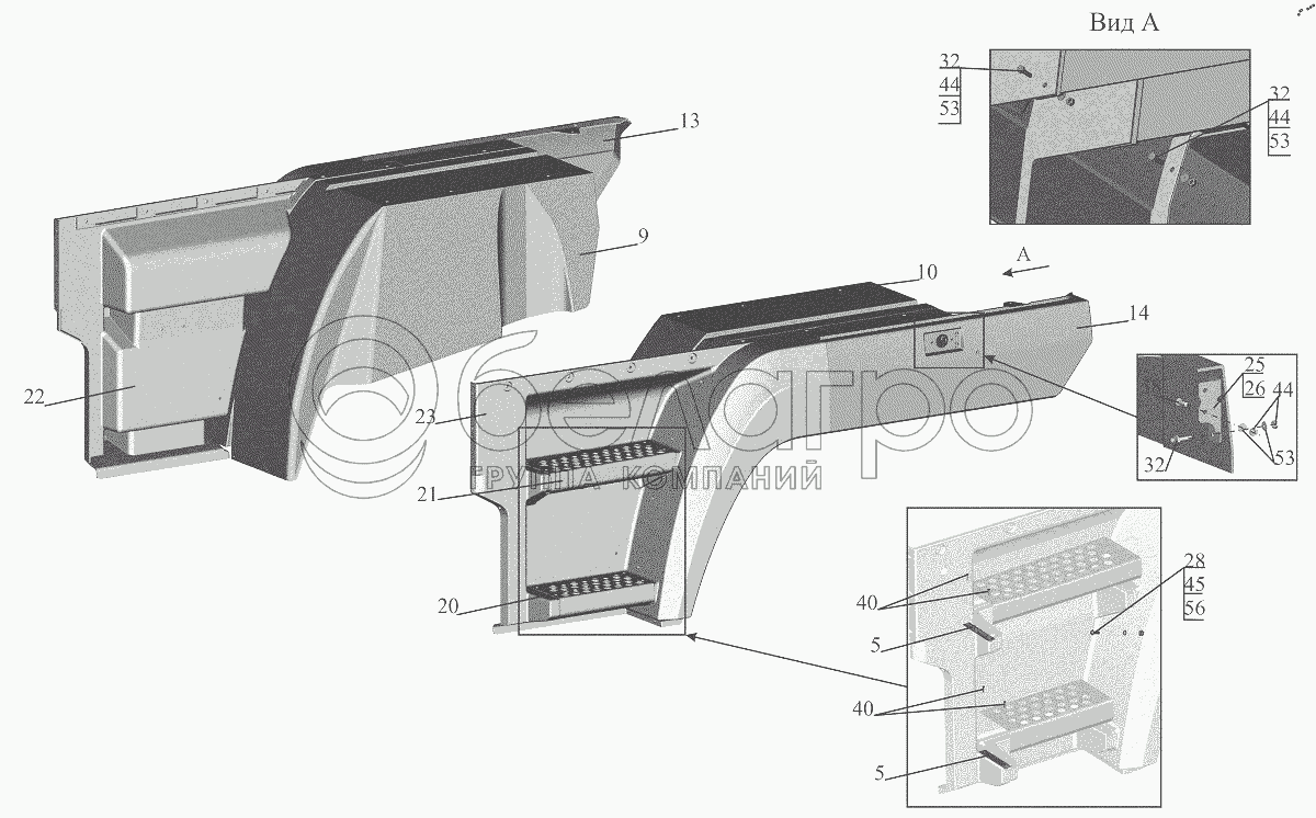 Каталог запасных частей к технике: МАЗ-6312B9-0008425-012. Оперение