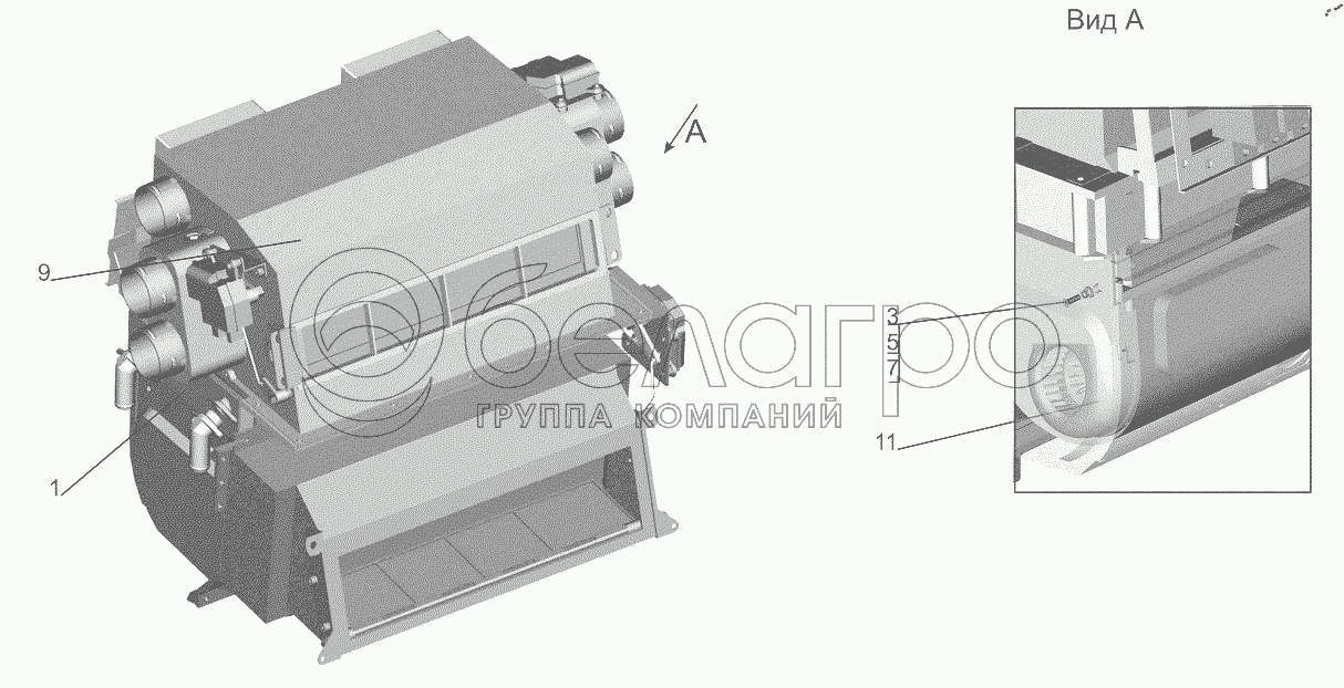 Каталог запасных частей к технике: МАЗ-6312B9-0008425-012. Отопитель 631019-8101010