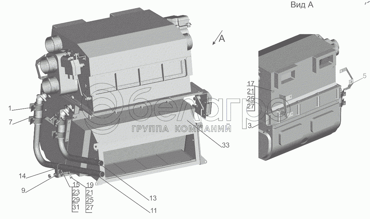 Каталог запасных частей к технике: МАЗ-6312B9-0008425-012. Отопитель 631019-8101010-010