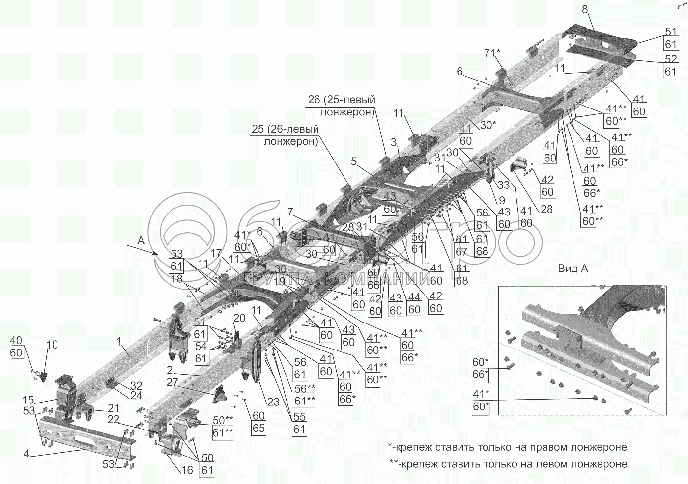 Каталог запасных частей к технике: МАЗ-6312B9-0008425-012. Рама 6312B9-2801002-022