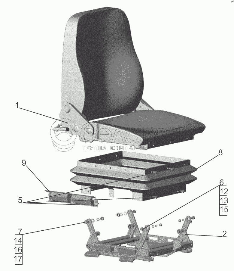 Каталог запасных частей к технике: МАЗ-6312B9-0008425-012. Сиденье переднее 6430-6810010