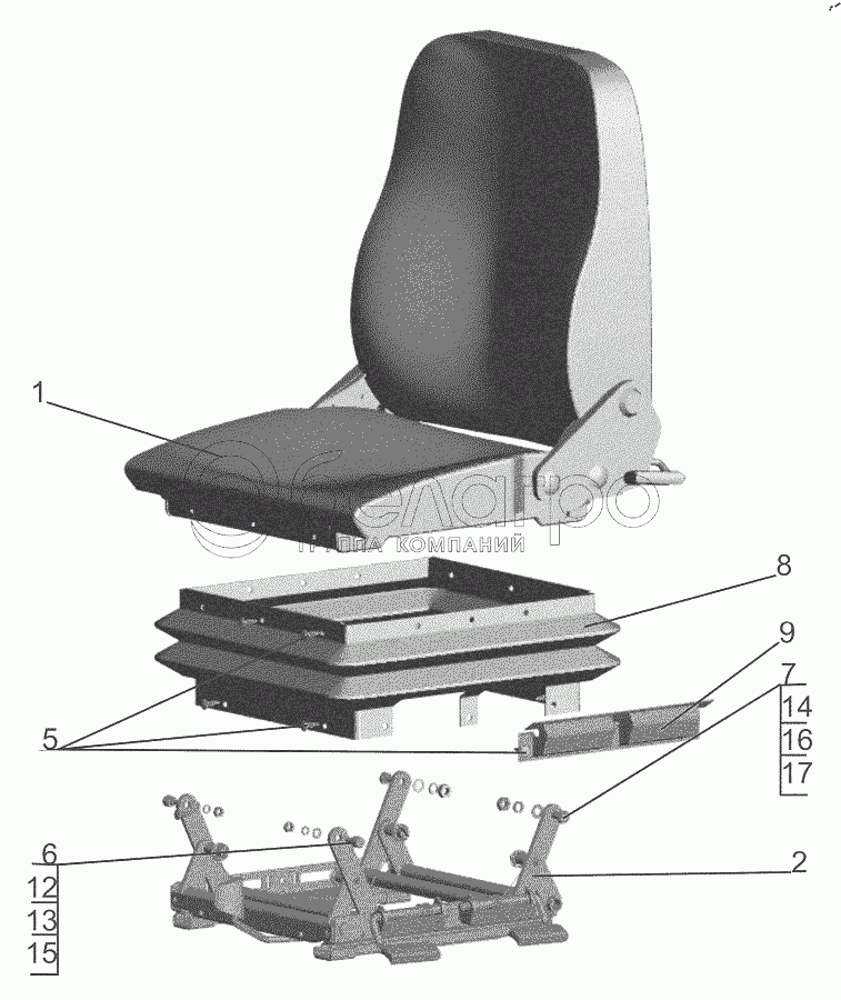 Каталог запасных частей к технике: МАЗ-6312B9-0008425-012. Сиденье водителя 6430-6800010