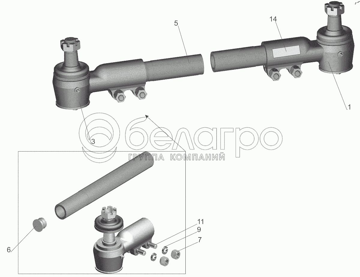 Каталог запасных частей к технике: МАЗ-6312B9-0008425-012. Тяга поперечная 64221-3003052