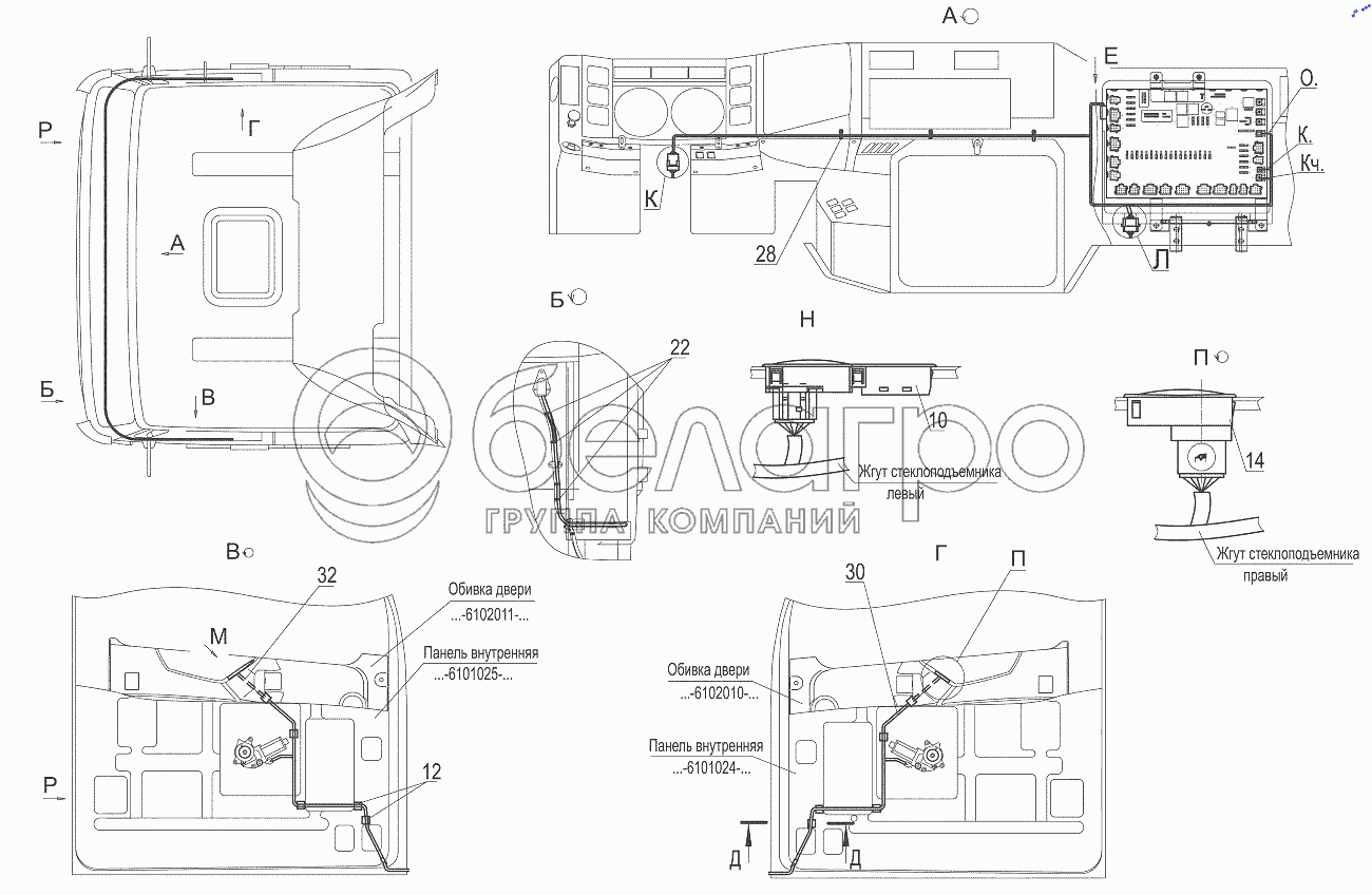 Каталог запасных частей к технике: МАЗ-6312B9-0008425-012. Установка электрооборудования стеклоподъемников