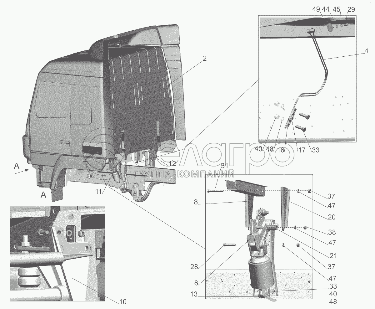 Каталог запасных частей к технике: МАЗ-6312B9-0008425-012. Установка кабины