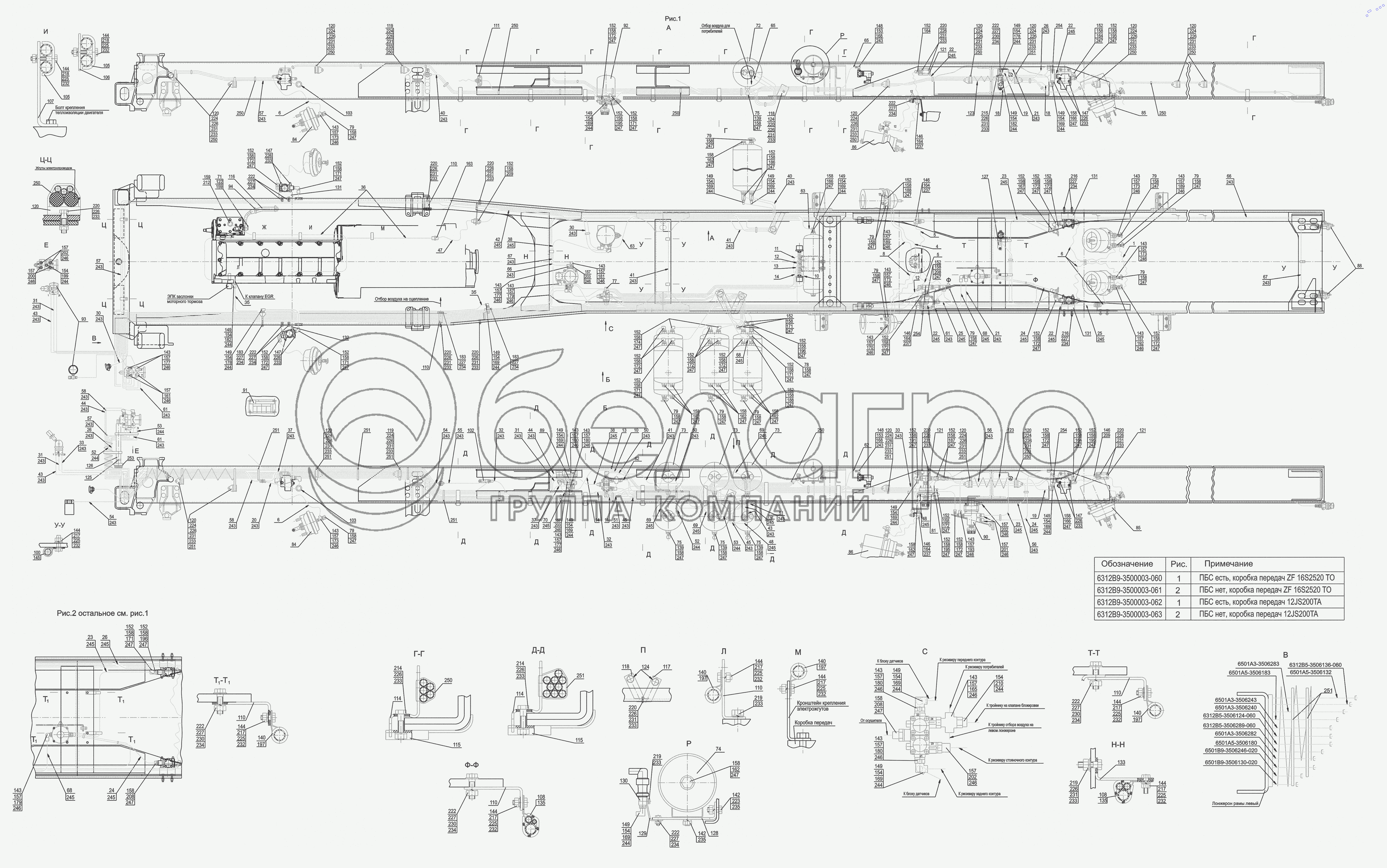 Каталог запасных частей к технике: МАЗ-6312B9-0008425-012. Установка пневмотормозов