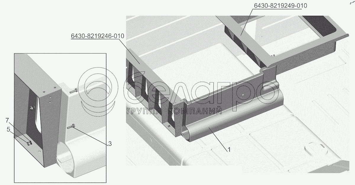 Каталог запасных частей к технике: МАЗ-6312B9-0008425-012. Установка стенки 6430-8200041