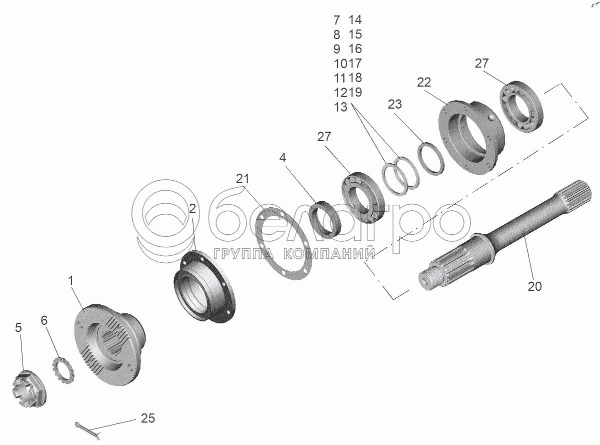 Каталог запасных частей к технике: МАЗ-6312B9-0008425-012. Вал задний