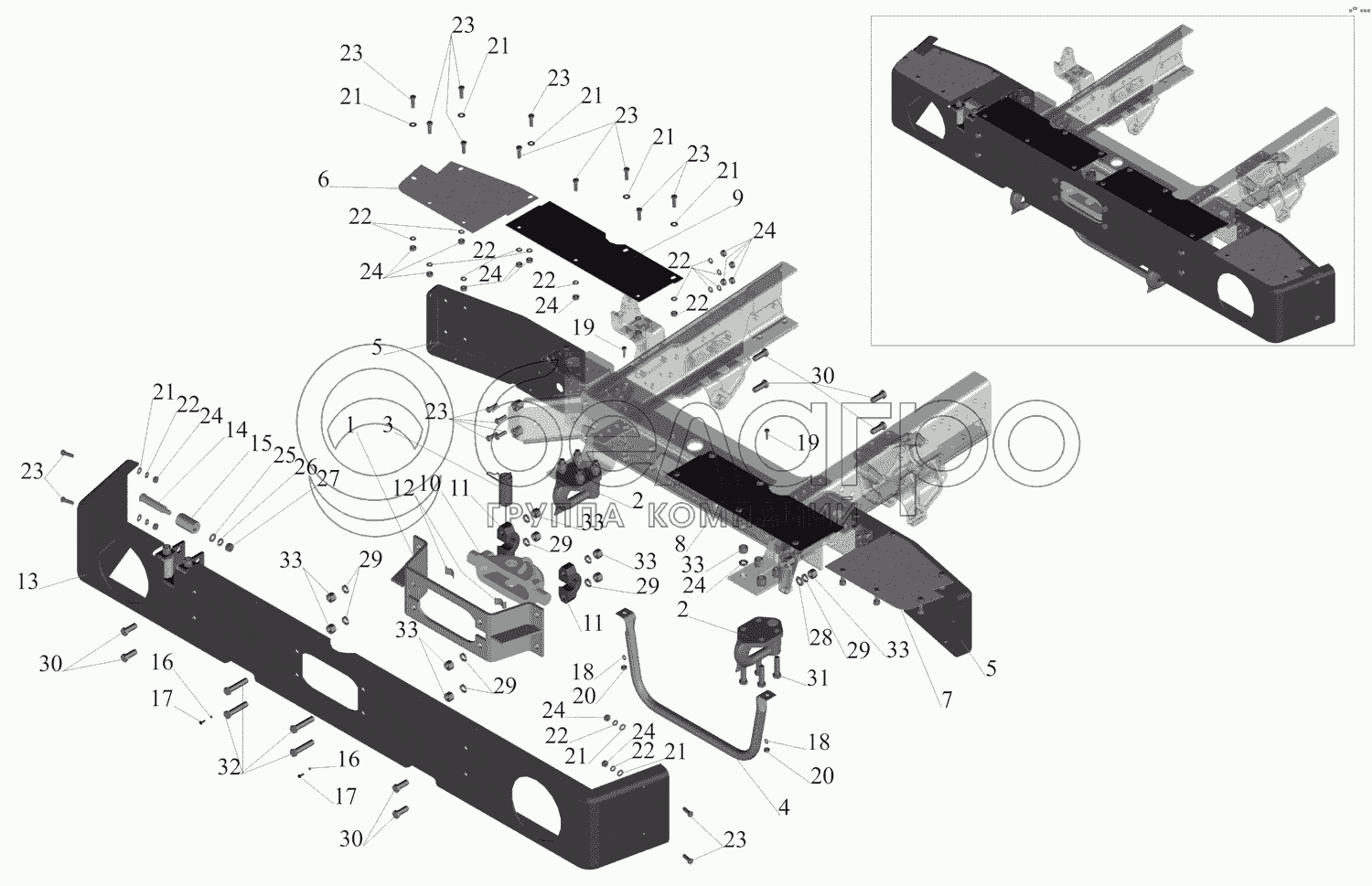 Каталог запасных частей к технике: МАЗ-631705. Крепление бампера