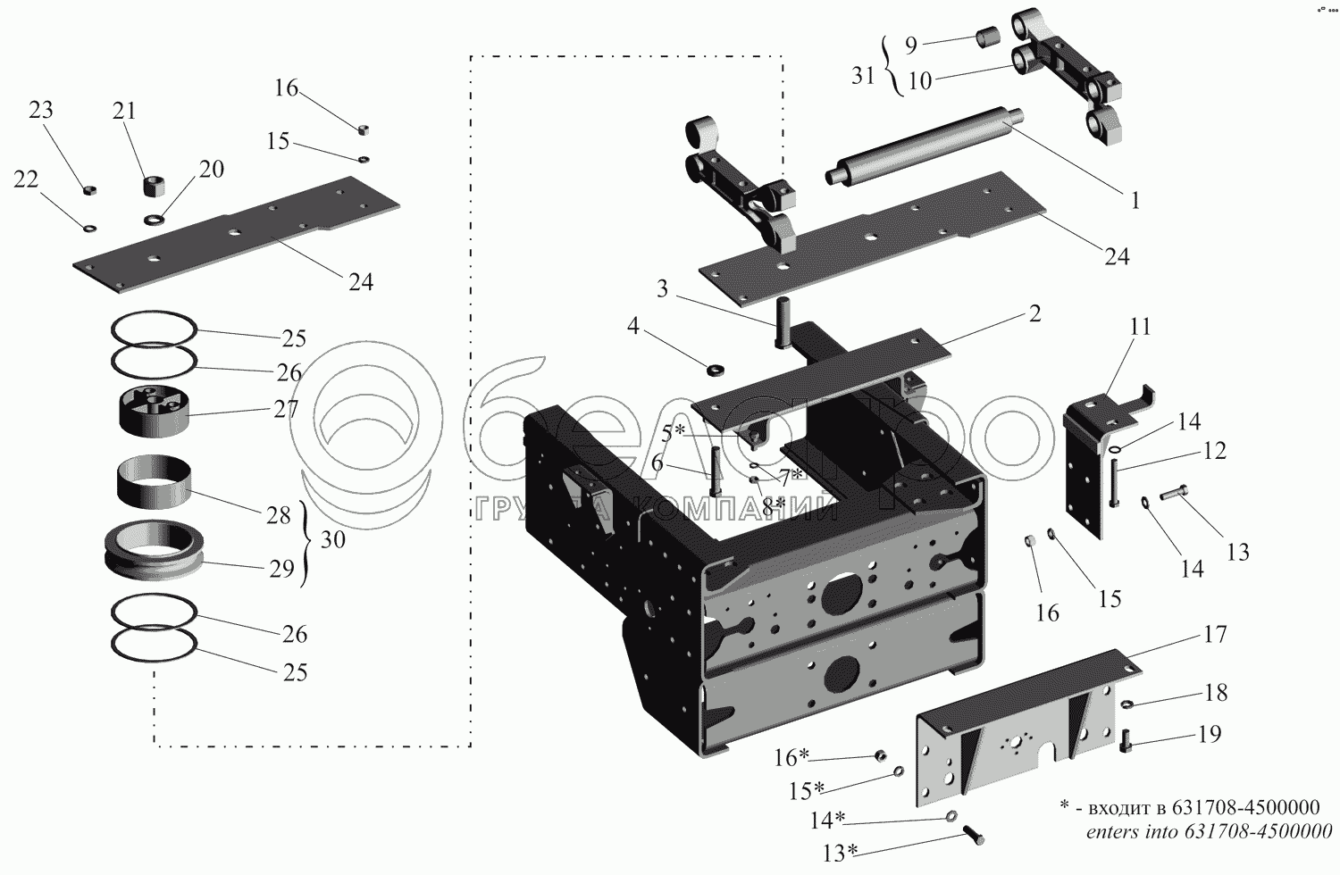Каталог запасных частей к технике: МАЗ-631705. Лебёдка. Тросовыдающее устройство 6317-4519002