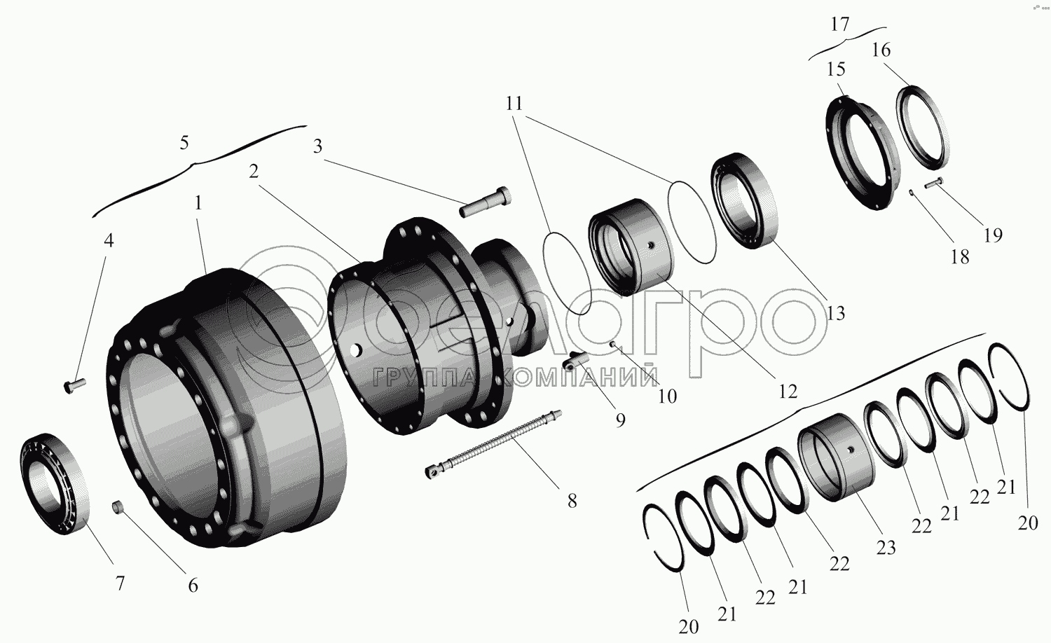 Каталог запасных частей к технике: МАЗ-631705. Мост передний. Ступица 6317-3103006