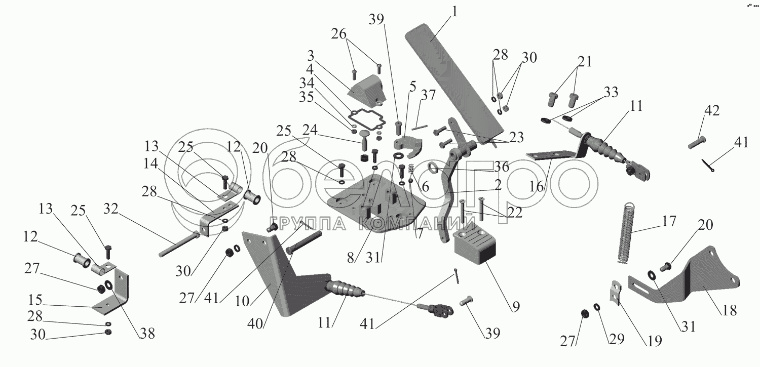 Каталог запасных частей к технике: МАЗ-631705. Привод управления двигателем 543208-1108002