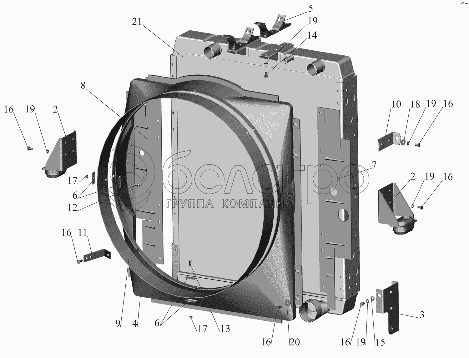Каталог запасных частей к технике: МАЗ-631705. Радиатор с кожухом 642290-1301009-011