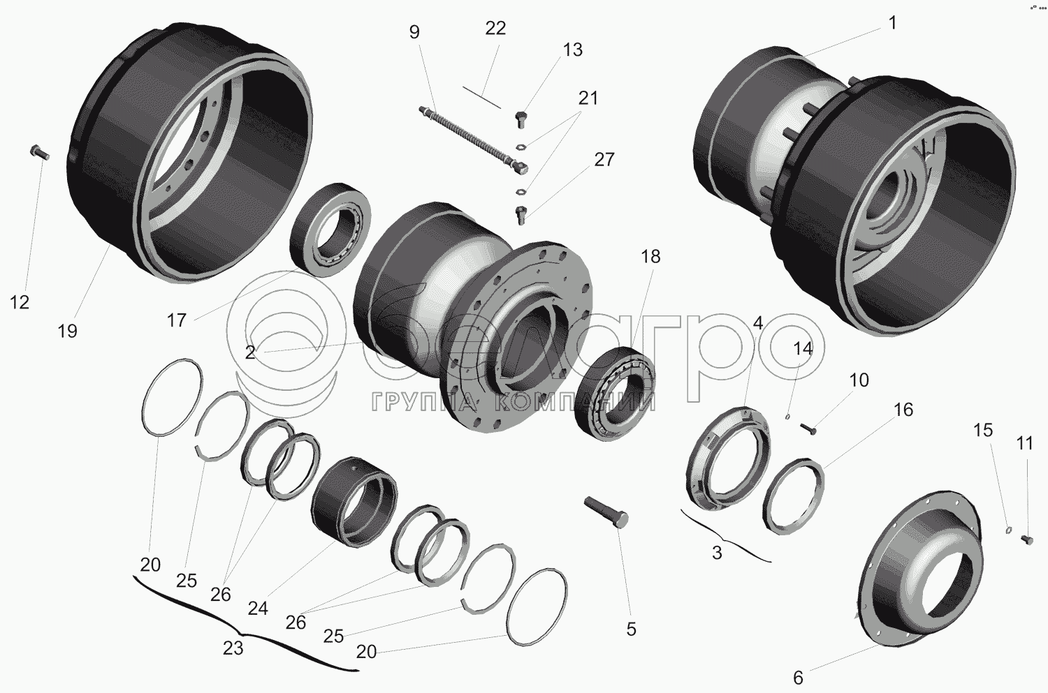 Каталог запасных частей к технике: МАЗ-631705. Ступица моста с головкой ЦНШ