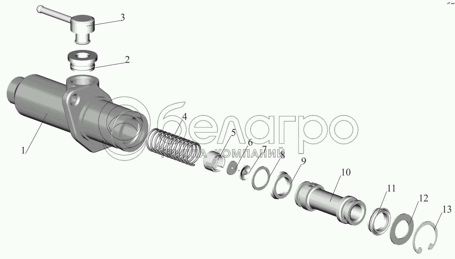 Каталог запасных частей к технике: МАЗ-631705. Цилиндр подпедальный 6430-1602510