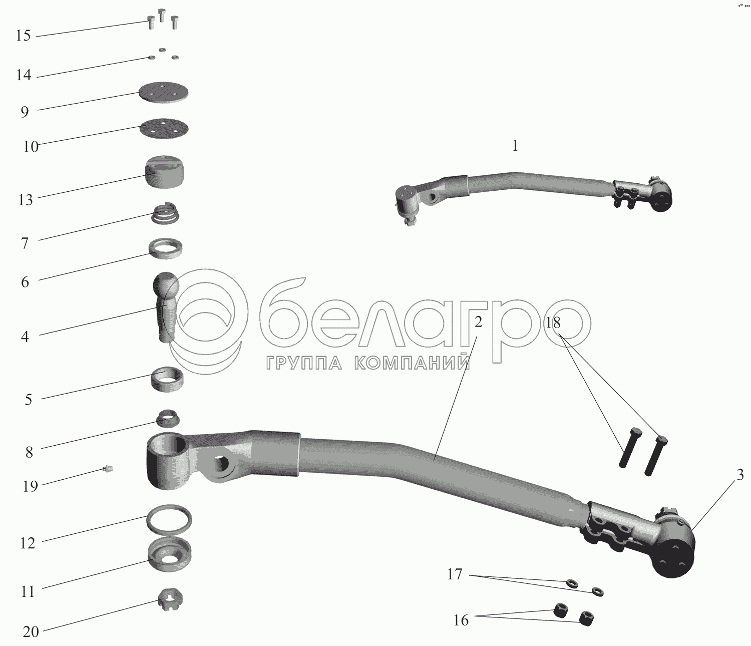 Каталог запасных частей к технике: МАЗ-631705. Tяга продольная 6422-3003010-01