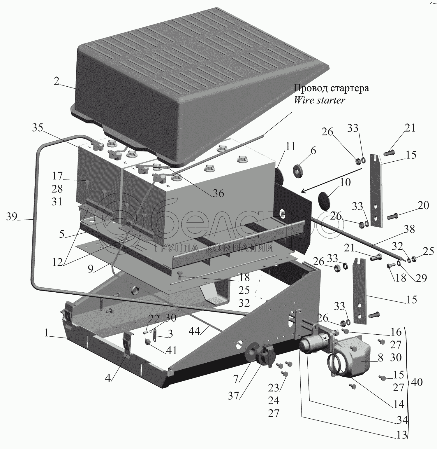 Каталог запасных частей к технике: МАЗ-631705. Установка аккумуляторных батарей 630300-3700008-700