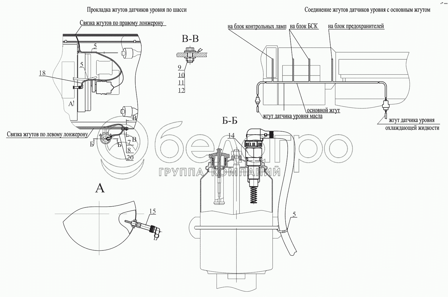 Каталог запасных частей к технике: МАЗ-631705. Установка датчиков уровня 543240-3700093