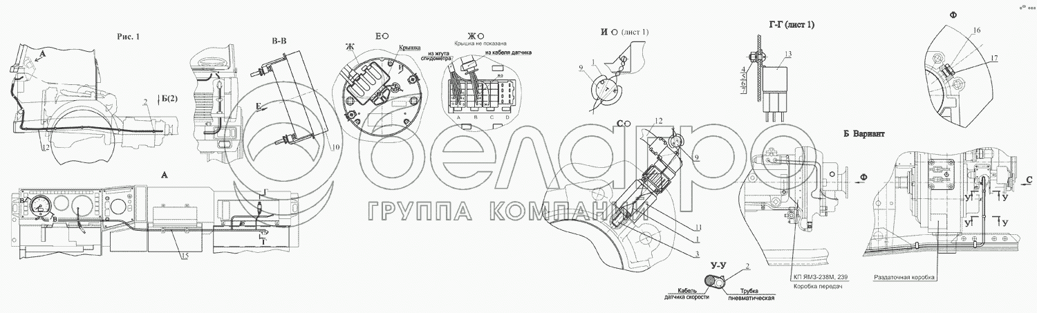 Каталог запасных частей к технике: МАЗ-631705. Установка и пломбировка спидометра 551605-3800004-700
