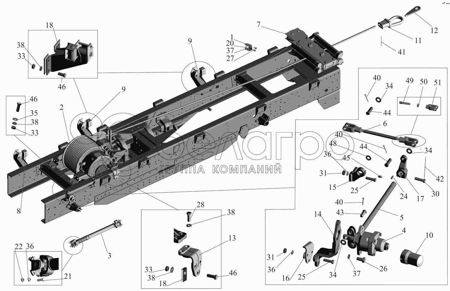 Каталог запасных частей к технике: МАЗ-631705. Установка и привод лебедки 631708-4500000