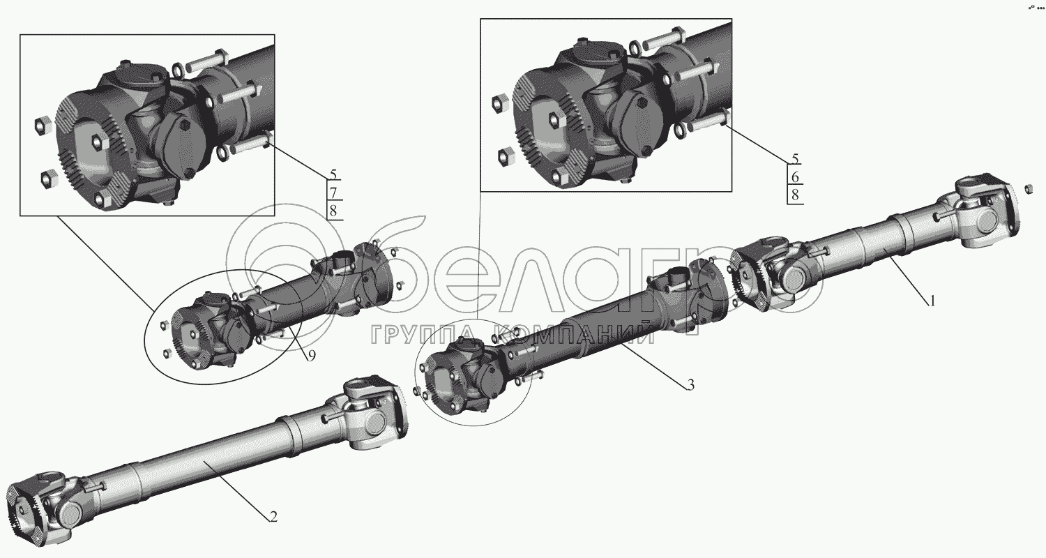 Каталог запасных частей к технике: МАЗ-631705. Установка карданных валов 642505-2200000-010