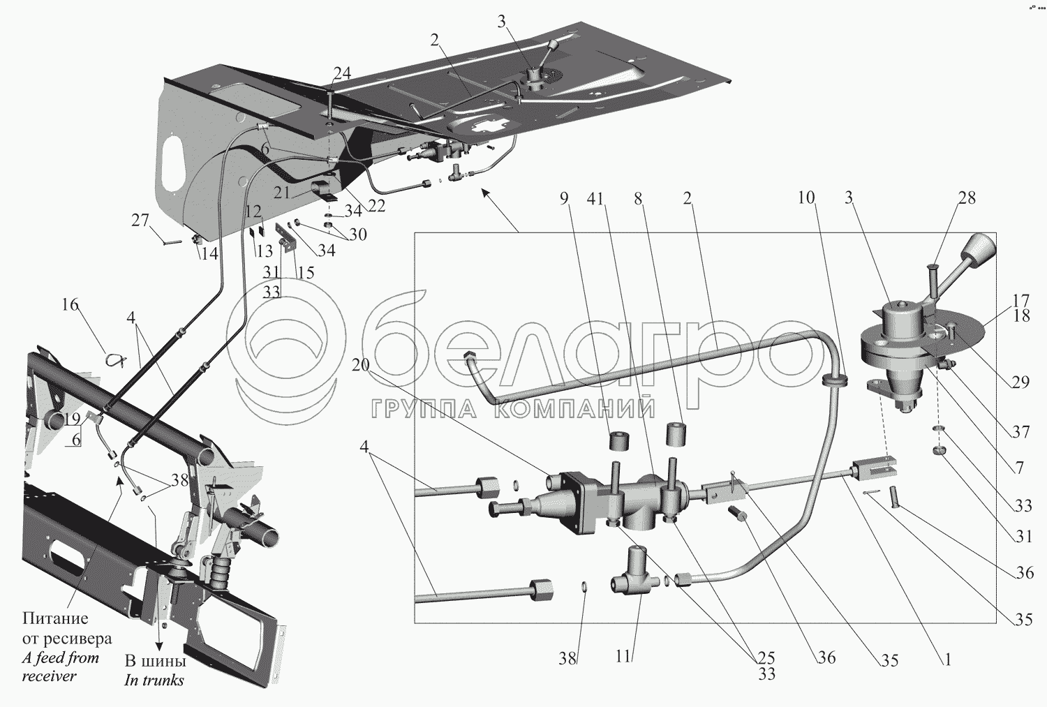 Каталог запасных частей к технике: МАЗ-631705. Установка крана накачки шин
