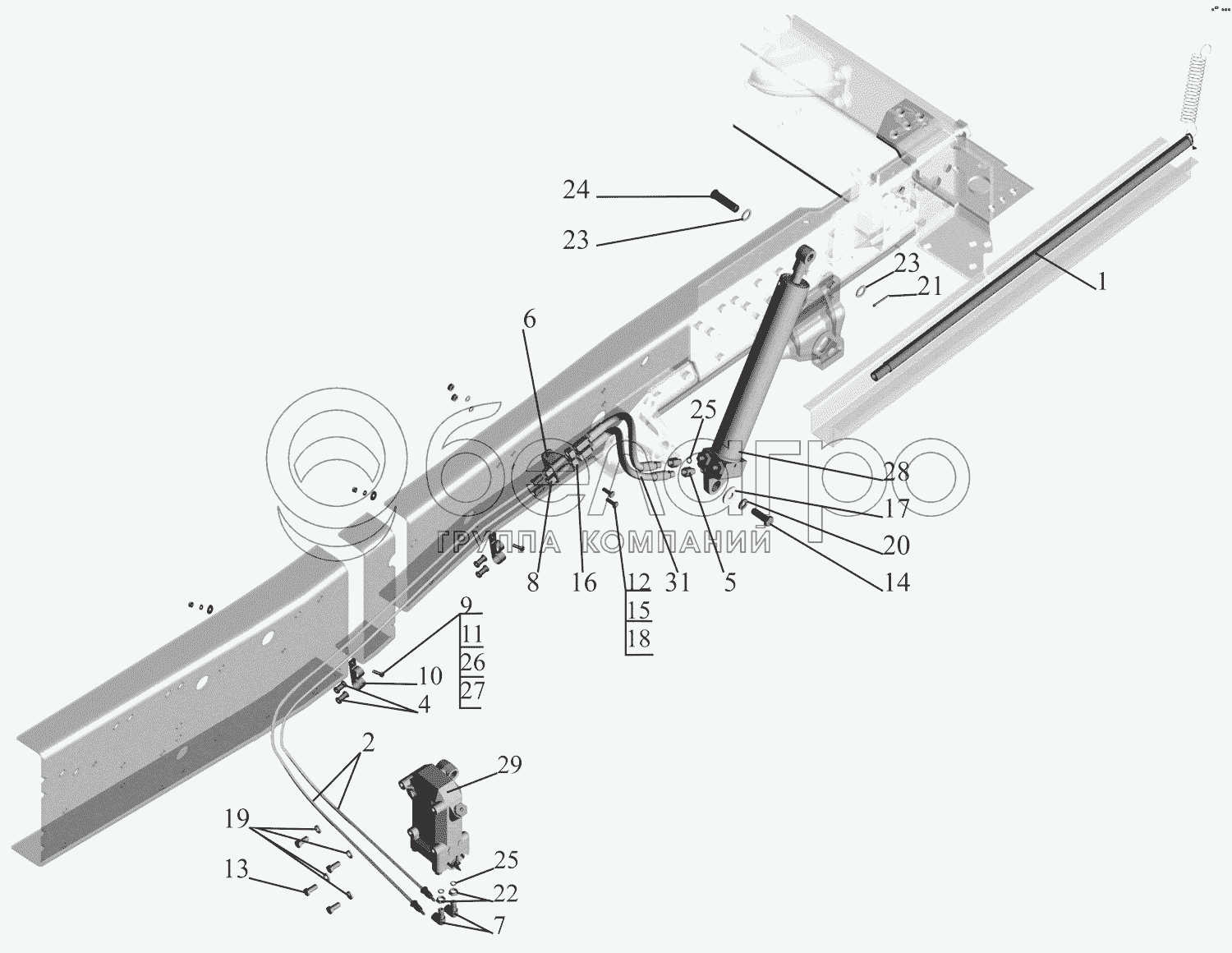 Каталог запасных частей к технике: МАЗ-631705. Установка механизма подъема кабины 6317-5000040