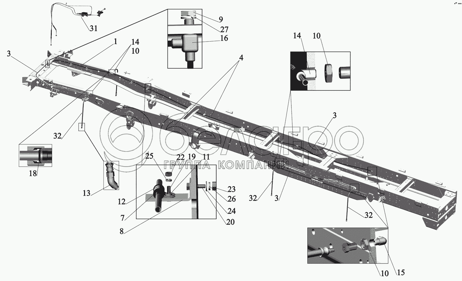 Каталог запасных частей к технике: МАЗ-631705. Установка накачки шин
