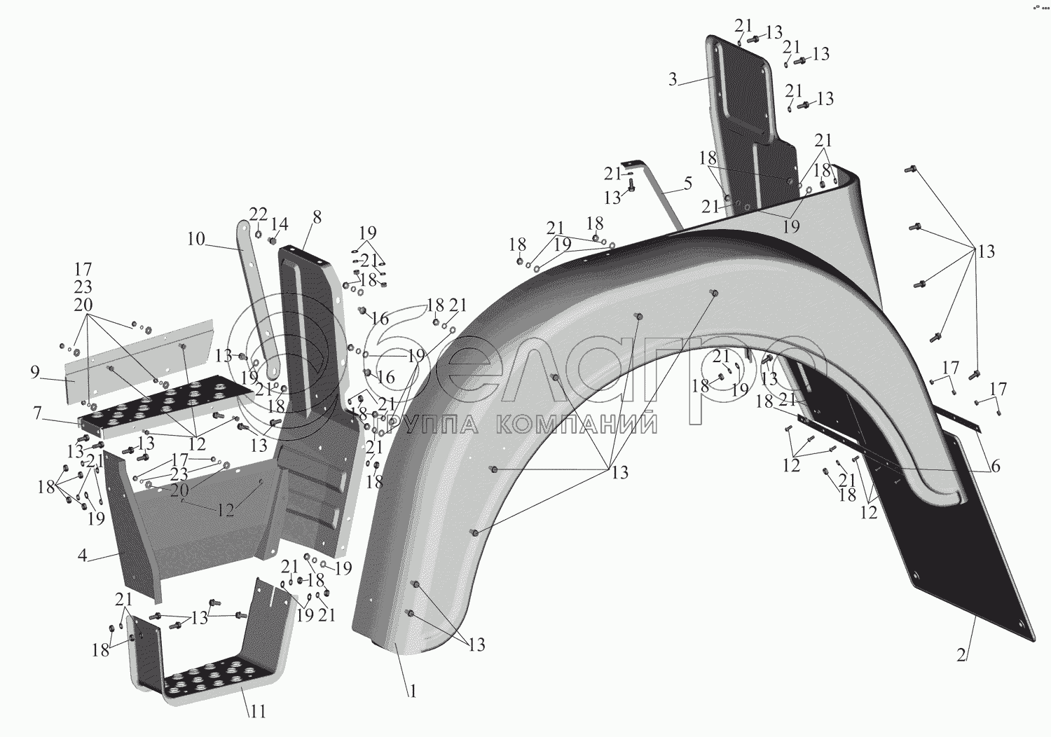 Каталог запасных частей к технике: МАЗ-631705. Установка оперения 6317-8400020